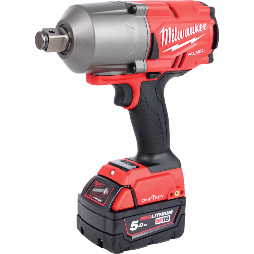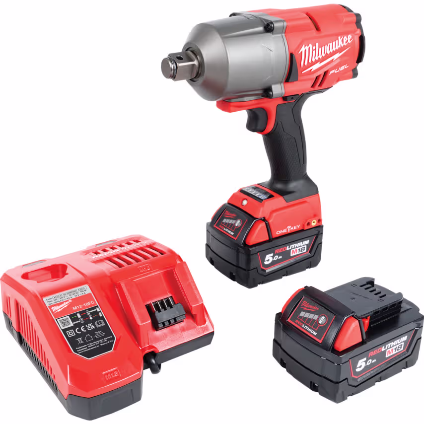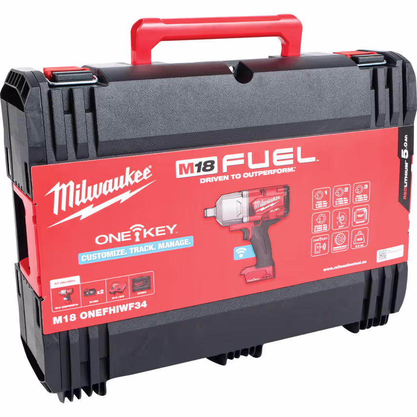 The Milwaukee 18V high torque impact wrench with ONE-KEYâ„¢ technology delivers 1627Nm of fastening torque in a compact size of 213 mm, which gives more access to tight spaces. Tackle a range of applications with an integrated blow counting sensor, enhancing the consistent repeatability of the chosen torque settings. The 4-Mode Drive Control allows the user to shift into four different speed and torque settings to maximise application versatility. The kit also includes 2 5.0Ah batteries, a charger, and a carrying case.