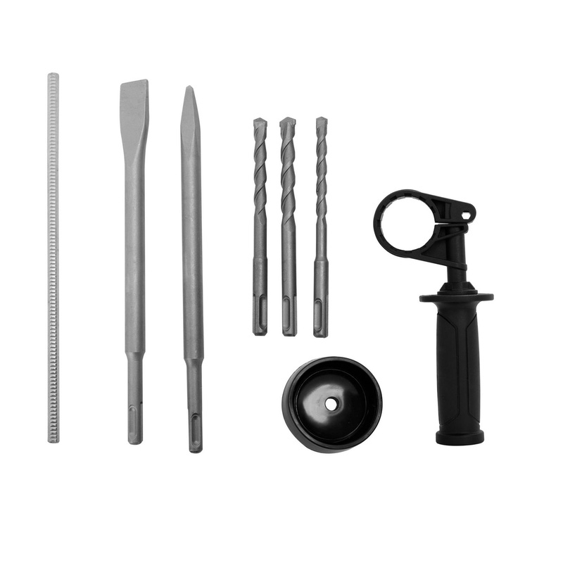 | Pack contents | ROKTOR SDS Drill, auxiliary handle, depth gauge, dust cover and 5 attachments (3 SDS drill bits; 8/10/12 x 150mm 2 SDS chisels; flat & pointed 250mm) and carry case |